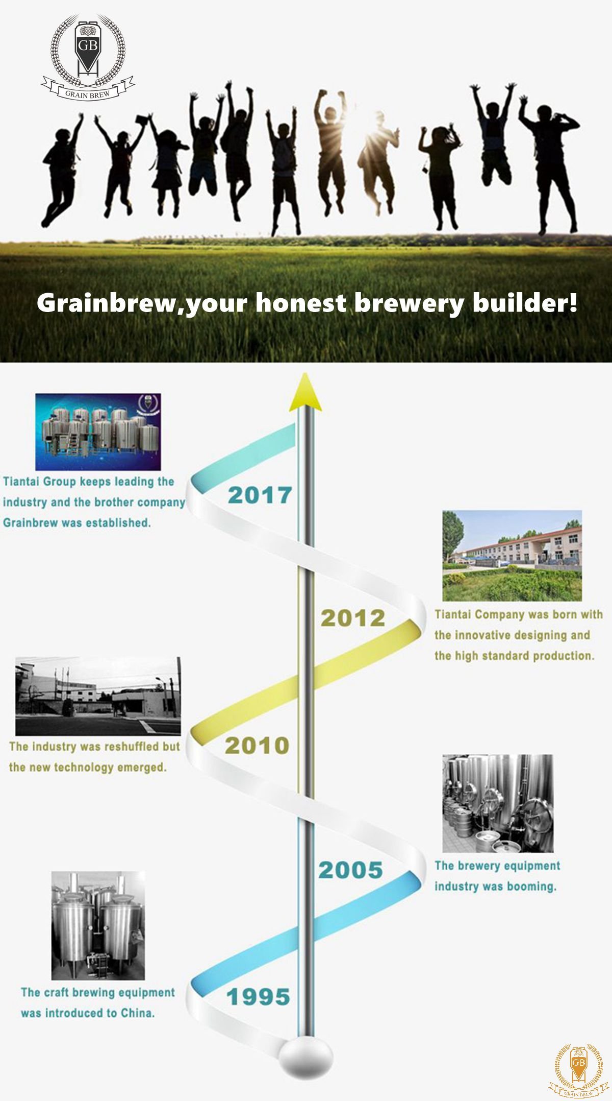 In 2015, with the great market demand and the high reputation from our good customer service, Grainbrew continued to grow up fast. Our product range expanded widely from homebrewing kits and nanobrewery equipment up to microbrewery equipment and the large scale industrial or commercial brewing equipment. Focusing on offering the higher quality and better service to our customers made Grainbrew the leading manufacturer of brewing equipment in China.