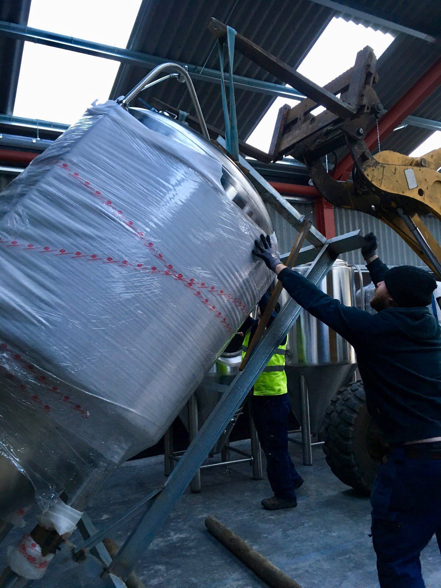 After about 70 days of production, the equipment is completed and successfully shipped to UK. Look! Below is beer fermenter being unloaded into the brewery.