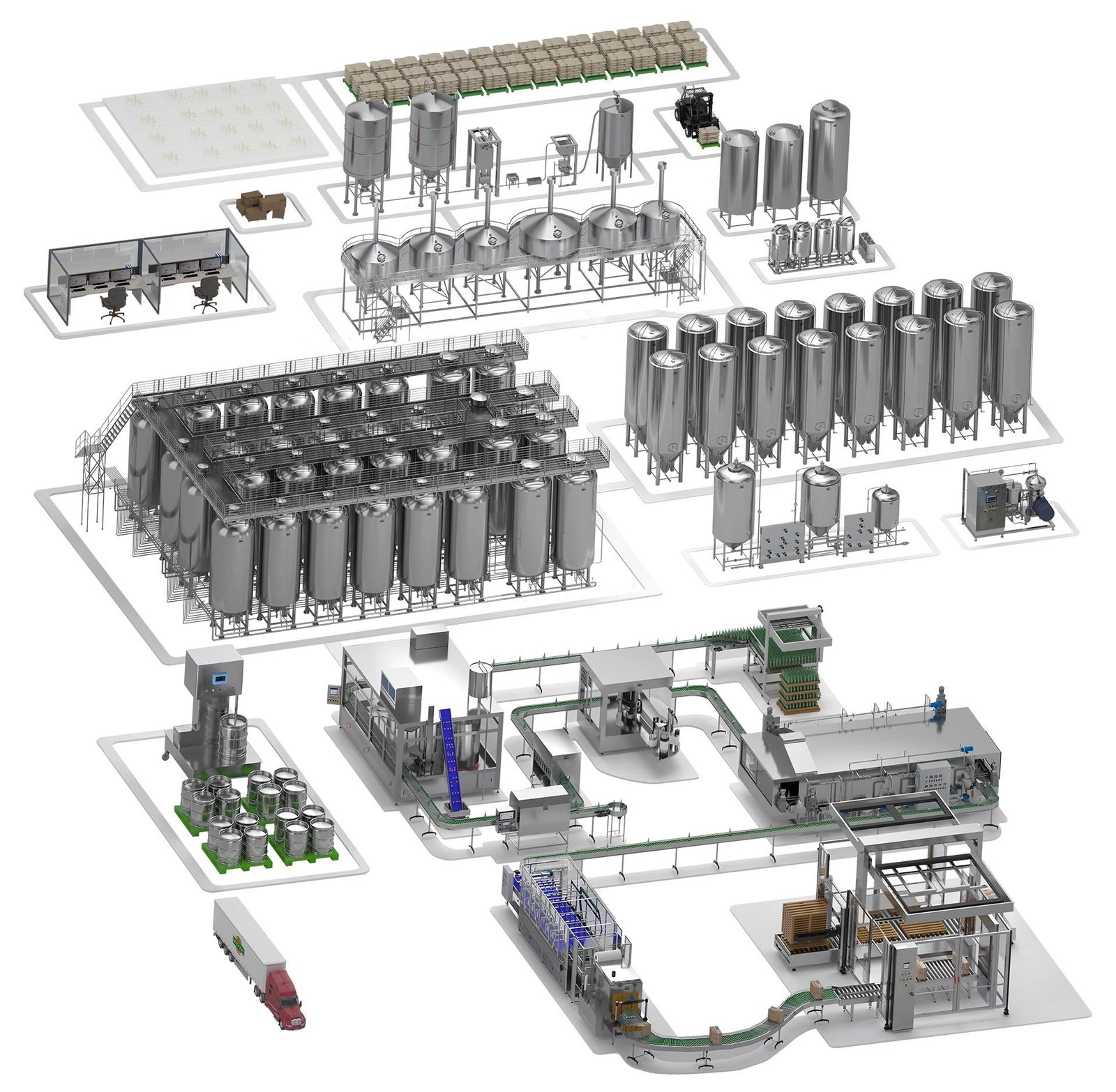 Configuration of 30 Million Liters Per Year Industrial Brewery Equipment By Tiantai Brewtech: