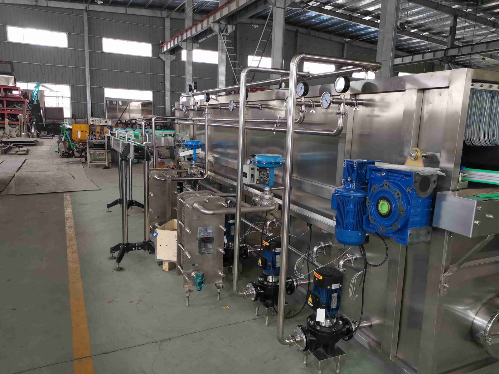 1. Pre-heating Zone: warm water sprays gently acclimate containers, preventing thermal shock(critical for glass) and preparing the product for the heat to come.