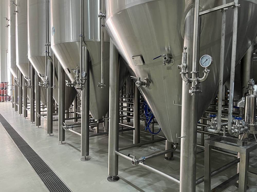 Below is the customer's beer fermentation area, featuring 12 sets of 10,000-liter fermentation tanks.