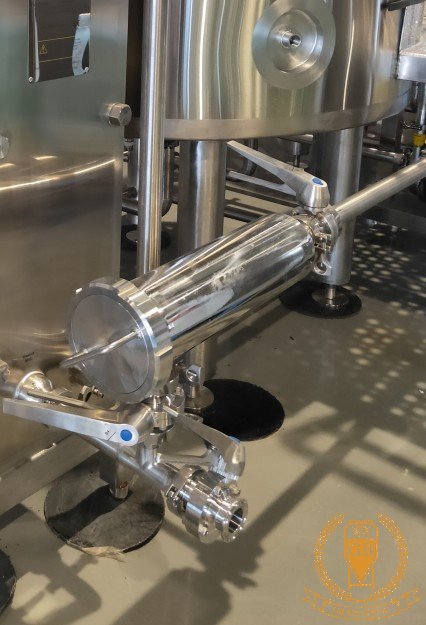 Pipe filter which is equipped on pipeline before heat exchanger to help prevent hot trub go into heat exchanger.