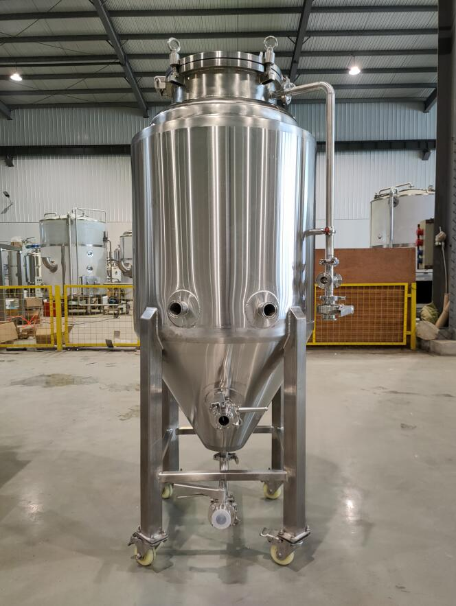 Our fermentation tank usually comes in two different styles------with top-mounted or side-mounted manholes. The small sizes of fermentation tanks usually with top-mounted manholes and the larger sizes of fermenters with side-mounted manholes, of course the tanks could always be customized according to your preferences. The one in the above photo is a 100lt mini-size tank, for this Nano-size tanks, wheels could also be designed for your convenience of moving.