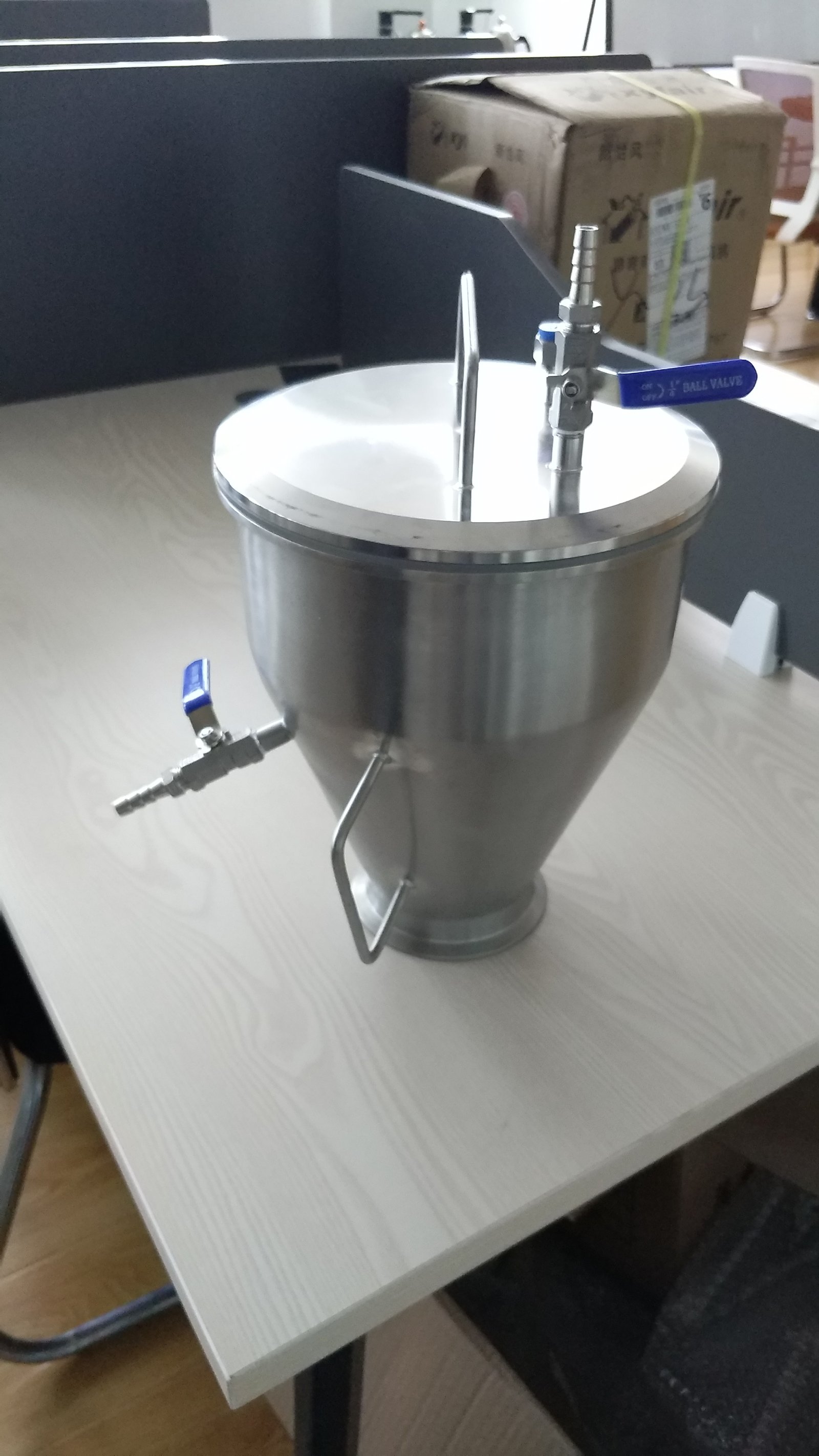 1) Detachable: the connection port between the hop tank and the fermenter can be Tri-clamp or DIN way, and there is a big butterfly valve for controlling the on or off of the pressure. Which means you can install or take it down at any time you want.