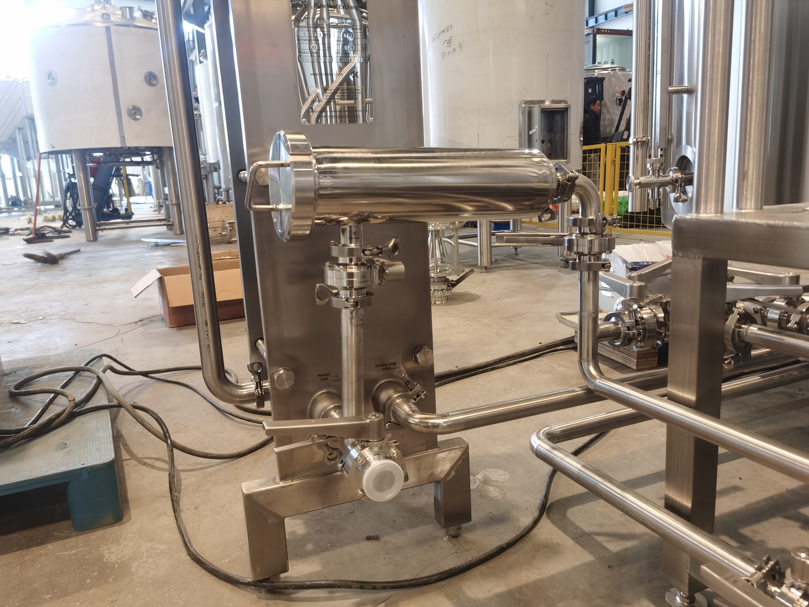As you can see from the above photo, it is a small thin filter configured in front of the Plate Heat Exchanger to avoid the hops clogging in the heat exchanger, the wort will flow pass this filter first, and most of bigger particles of hops will be remained in it, this will prevent the blocking happens effectively.