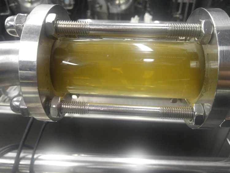 The wort that flows early is unclean, and these unclear wort should be pumped back into lauter tun from the top. Then when we find the wort is becoming very clear from the pipe sight glass, the wort needs to be transferred into the kettle to collect and boil.