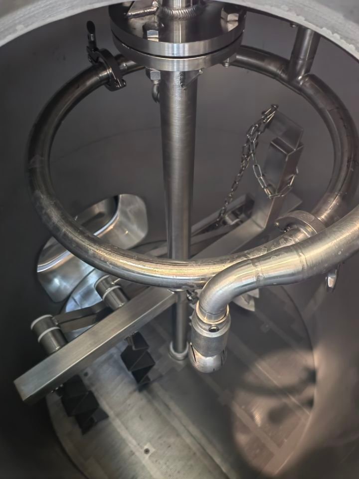 Below is the sparging cycle, which is formed by bending stainless steel tubes in one pass without welds and dead ends. Drill holes or nozzles at multiple angles when making, so that the sparging is finer. And the sprayed water fully covered the bad layer.