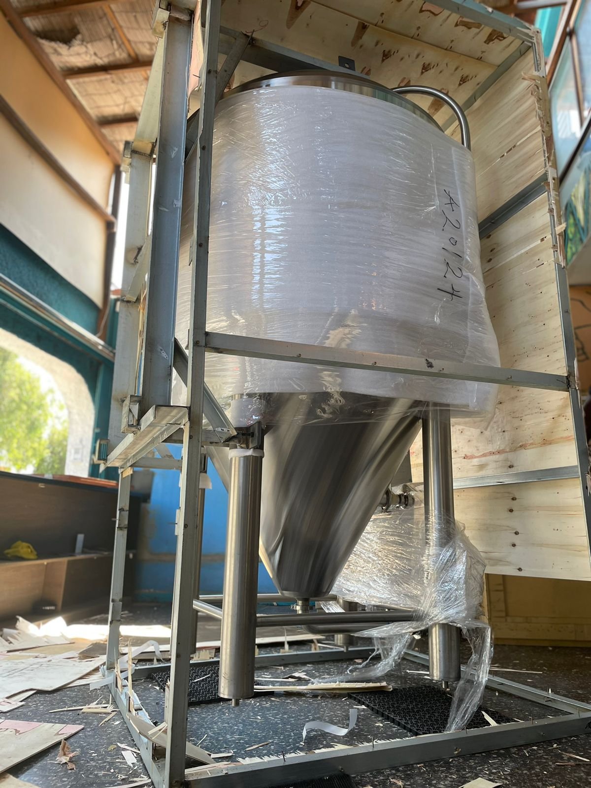 After more than 40 days shipping, Tiantai grain miller and 1200L beer fermenter arrived to Peru, the brewer is a gril, she checked every deatils of equipment carefully.